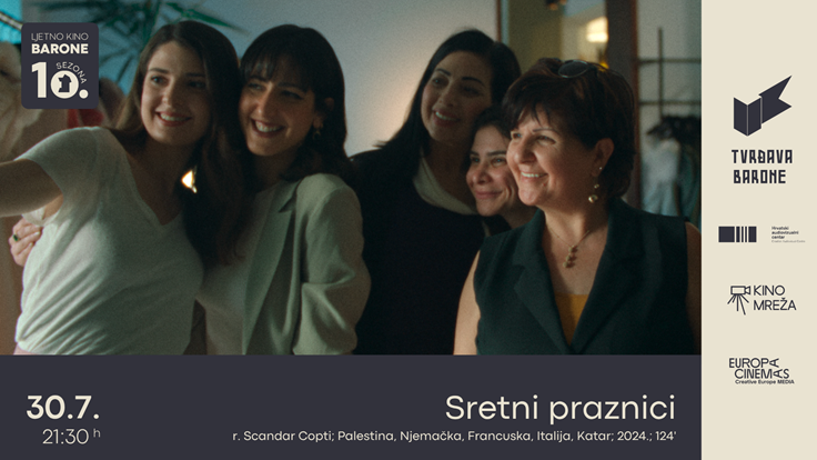 Srpanj će ispratiti projekcija filma Sretni praznici (30.7.) palestinskog autora Scandara Coptija koji na Barone dolazi kao izbor iz programa Zagreb Film Festivala. Svojedobno nominiran za Oscara za svoj prvijenac Ajami, Copti u svom novom filmu ponovno pokazuje iznimnu vještinu rada s naturščicima. Osim što su u filmu prvi put glumili, Coptijevi glumci uskraćeni su i za scenarij - sve su scene snimljene isključivo redateljskim uputama i govornim improvizacijama. Rezultat je istovremeno uvjerljiv, uzbudljiv i potresan prikaz suživota Arapa i Izraelaca u suvremenoj Haifi. U Veneciji (2024.) Sretni praznici nagrađeni su za najbolji scenarij.