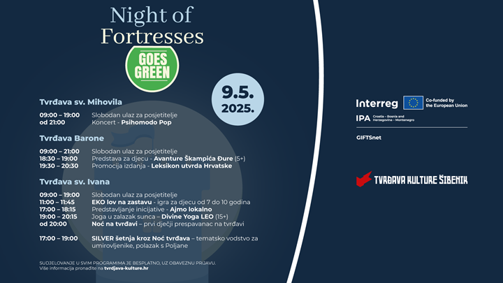 Podsjetimo, manifestacija Night of Fortresses Goes Green dio je čak dva EU projekta koje provodi JUK Tvrđava kulture Šibenik: